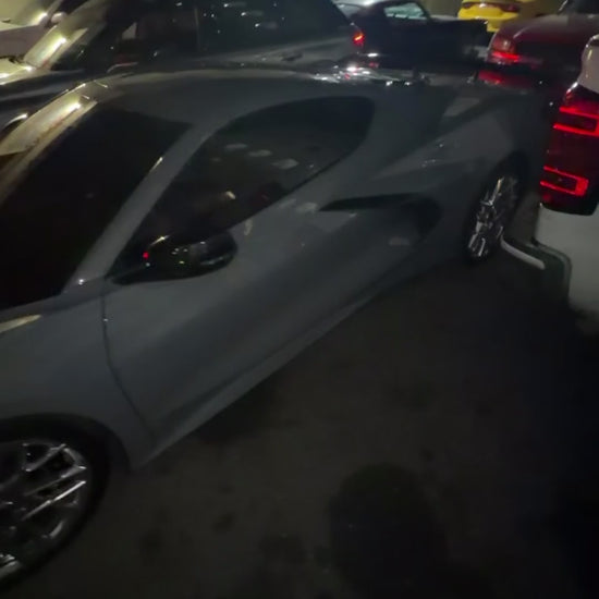 The Corvette C8 features a striking grey exterior paired with a sophisticated black interior. This combination not only enhances its aerodynamic design but also provides a refined driving environment. The C8 is engineered for performance, delivering exceptional handling and responsiveness on the road, making it a noteworthy option in its class.